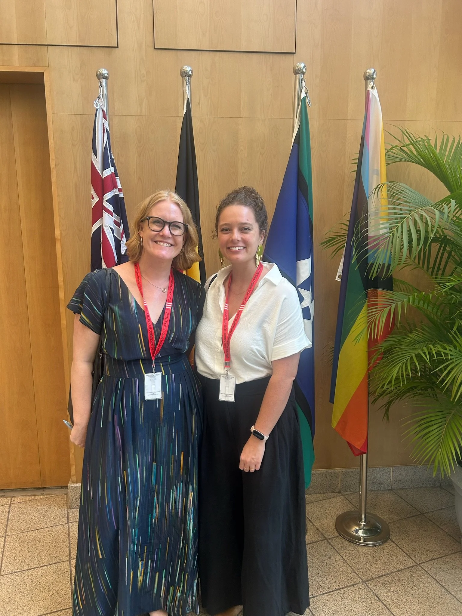L-R: Steph Cousins (Skill Path CEO) and Bailey Castillo (Skill Path program manager) at the Australian High Commission in Delhi to discuss the Refugee Student Settlement Pathway.